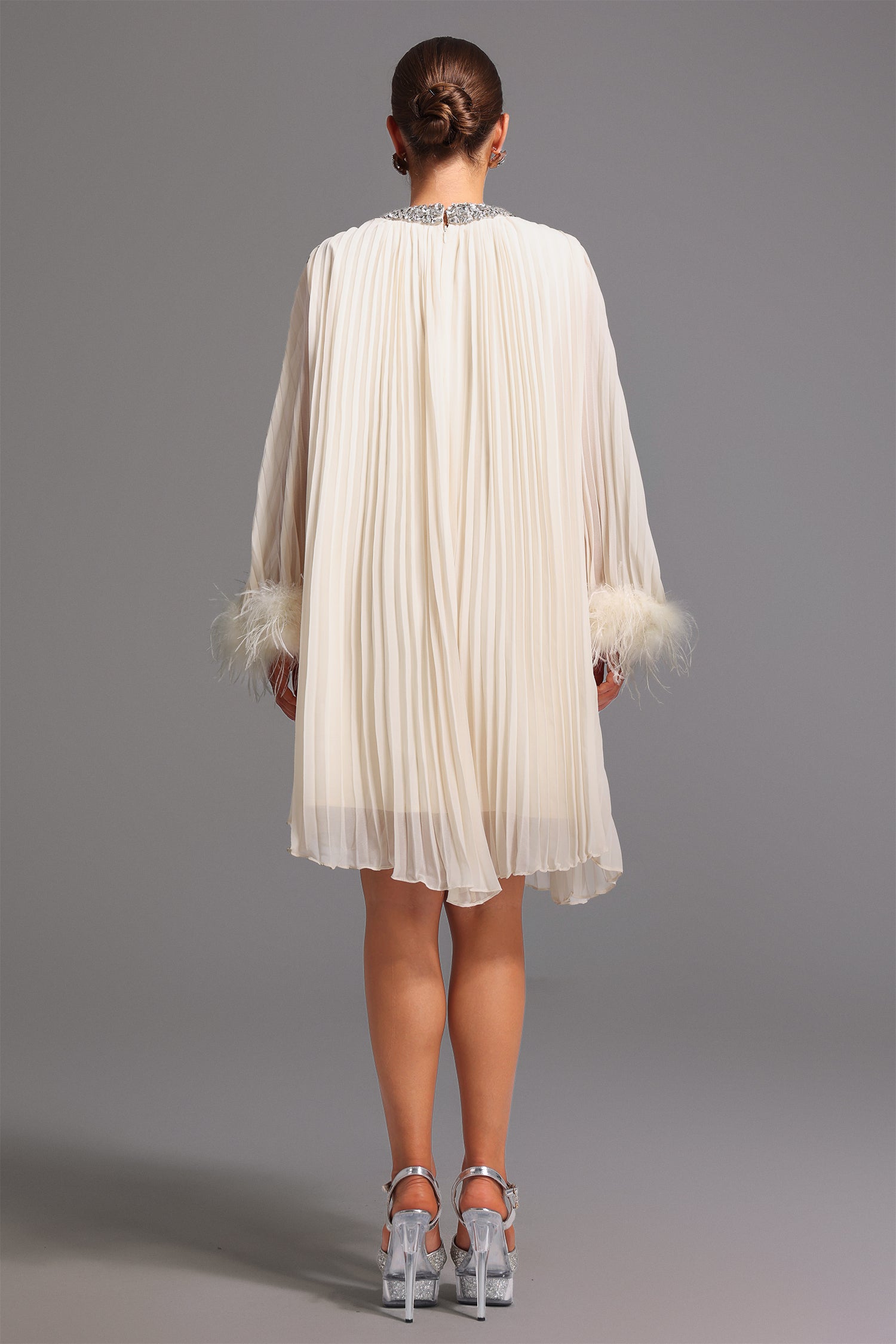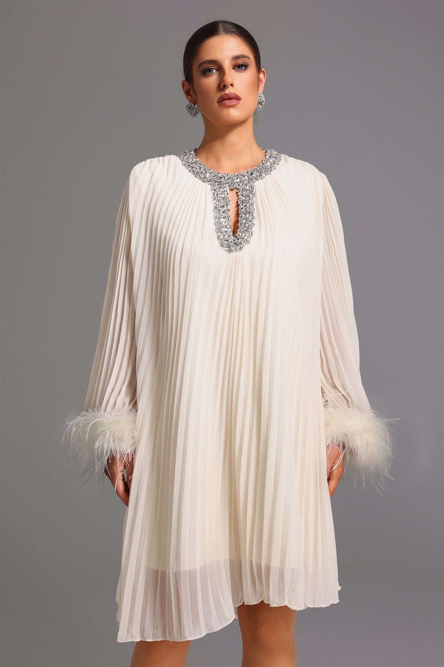 Delilah Uzun Kollu Yuvarlak Yaka Elmas Tüylü Midi Elbise