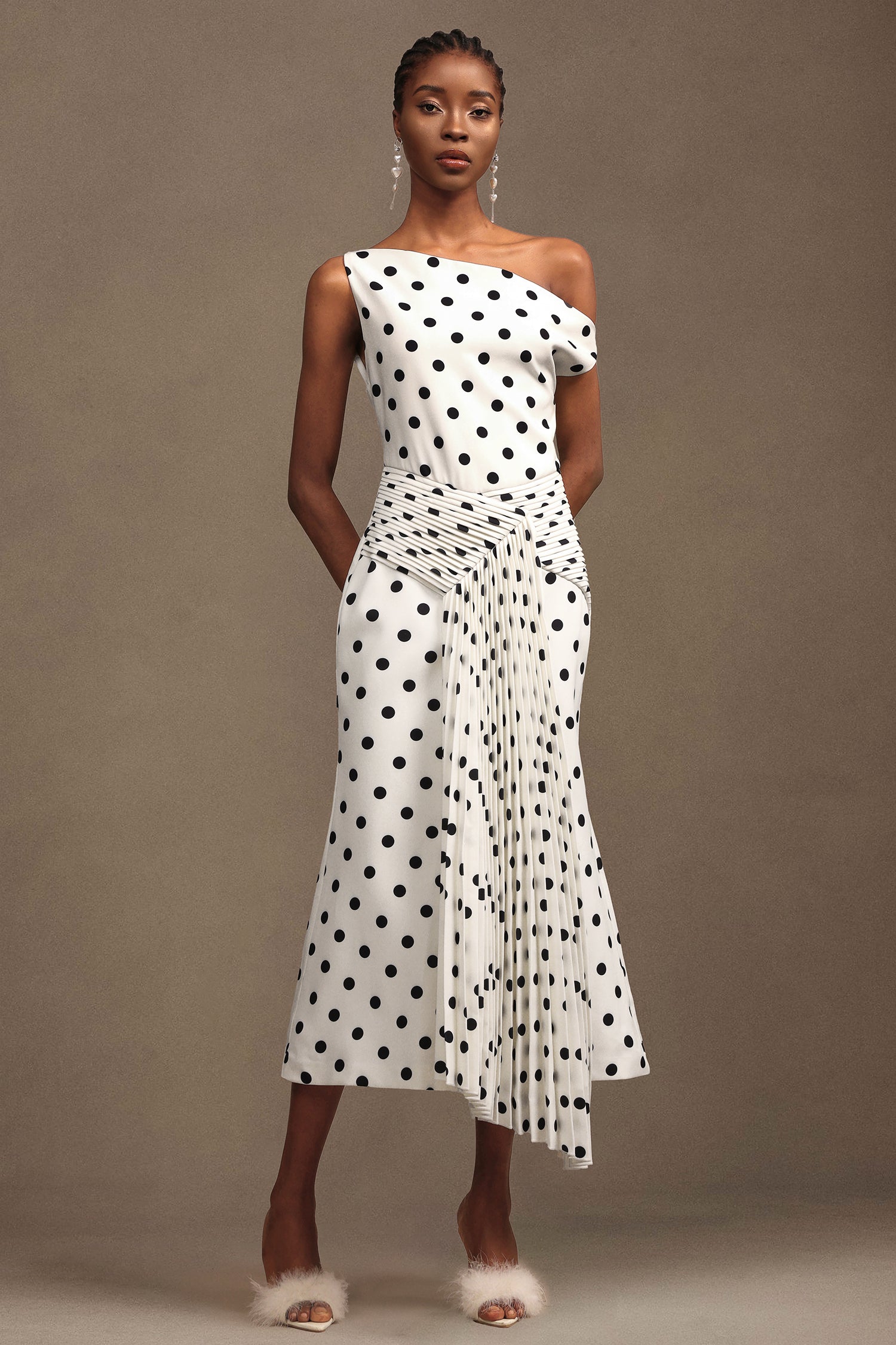 Hutuny Puantiyeli Tek Omuzlu Katlanır Maxi Elbise