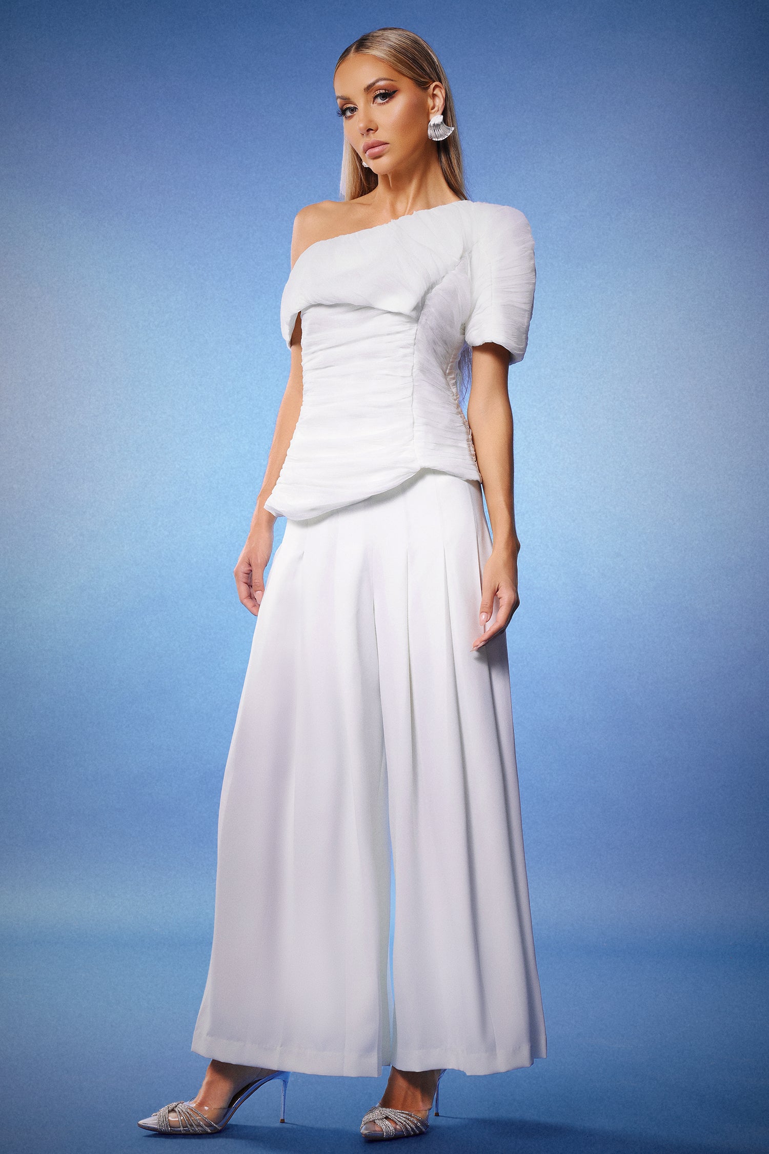Rina Kısa Kollu Tek Omuzlu Maxi Takım